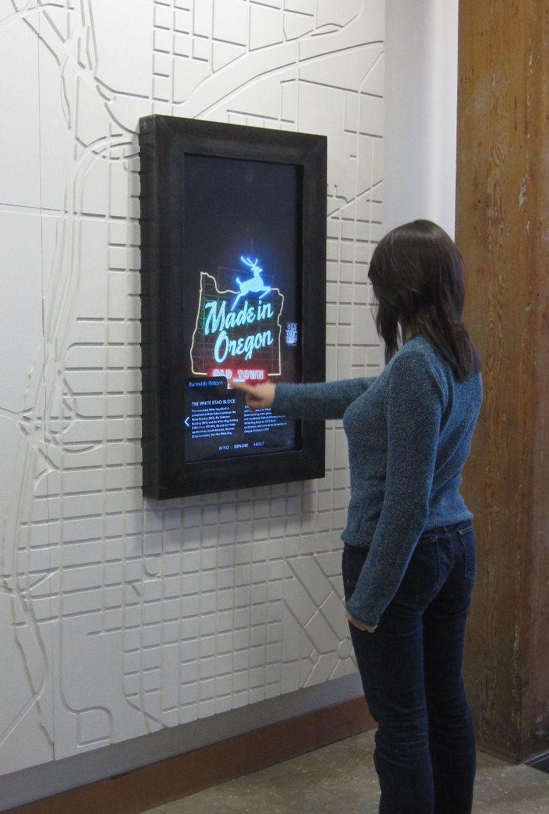 The Naito Legacy Project is an interactive installation recognizing the civic contributions made by the brothers Bill and Sam Naito to the city of Portland. Over 30 years, the Naito brothers transformed dozens of dilapidated historic buildings into civic anchors that were economically viable, and socially meaningful to the city of Portland. The installation is housed in the University of Oregon White Stag Block.